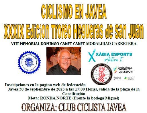 La 39ª edición del Trofeo Hogueras de San Juan – 8º Memorial Domingo Canet Canet se celebrará el sábado 30 de septiembre, con salida y llegada en Jávea. La prueba de categoría júnior, organizada por el Club Ciclista Jávea, modifica su recorrido con respecto a la edición anterior y aumenta su distancia hasta los 100 kilómetros.