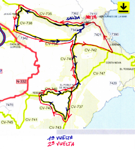 El pelotón partirá de la Plaza Constitución de la localidad alicantina a las 17:00 h y terminará en la Ronda Norte a las 19:30 h. En la primera vuelta del recorrido se atravesarán poblaciones como Jesús Pobre, Gata y Benitatxell, mientras que en el segundo bucle el recorrido se amplía hasta la playa del Arenal, antes de dirigirse a la meta en Jávea.