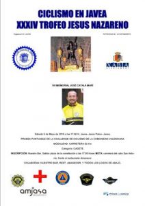 El sábado 5 de mayo el ciclismo de base vuelve a la localidad alicantina de Xàbia con la 34ª edición del Trofeo Jesús Nazareno-7º Memorial José Catalá Marí– para la categoría de cadetes y puntuable para los Juegos Deportivos de la Comunitat Valenciana (JDCV).
