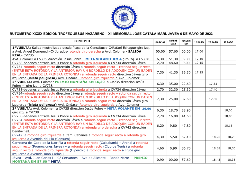 El próximo día 6 de mayo el ciclismo de base vuelve a la localidad alicantina de Xàbia (Alicante) con la 39ª edición del Trofeo Jesús Nazareno-12º Memorial José Catalá Marí– para las categorías de cadetes y féminas júnior, prueba puntuable para la Challenge de Cadetes Ruta de la Comunitat Valenciana.