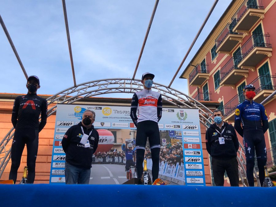 El Trofeo Laigueglia comenzó, como ya sucedió tras la primera etapa del UAE Tour –y es más que probable que vuelva a ocurrir en más ocasiones– con susto. El equipo Giotti Victoria-Savini Due no tomaba la salida a causa de un positivo en COVID de uno de los miembros de su personal.