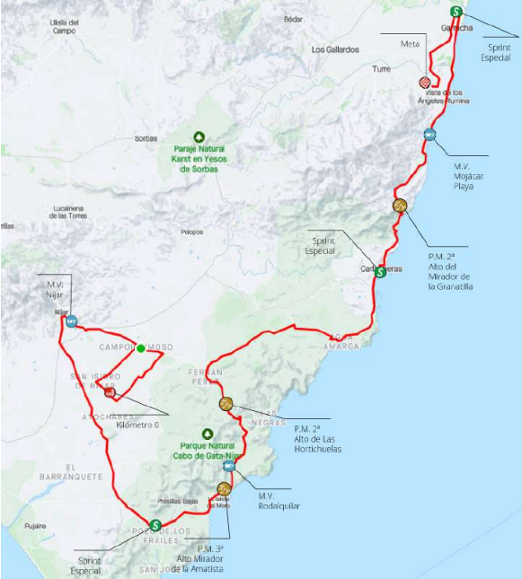 Olivia Baril: «El trabajo de equipo ha sido fantástico. Era una carrera muy particular, porque corríamos ocho por equipo, y eso nos ha permitido tener más facilidad para meter gente en las fugas. Ha habido incluso un punto en el que teníamos dos por delante y aun así quedaban seis compañeras atrás. Hemos jugado muy bien nuestras bazas. Meter a Arlenis en una de las escapadas del tramo final nos daba una ventaja enorme, porque era un tipo de corredora que perfectamente podía ganar. Laura y Lucía también han cubierto muy bien los ataques hasta los últimos kilómetros, y las chicas más escaladoras me hah ayudado muy bien en la aproximación. Me ha sorprendido que, pese a que hubo ritmo en las subidas y a alguún abanico que hemos tenido, al final se ha llegado con un grupo muy grande al último repecho. Siempre he tenido gente alrededor para apoyarme en esa llegada. Había pasado dos veces el repecho de Mojácar porque teníamos el hotel al lado, y me ha ayudado. Las compañeras me han llevado bien hasta el momento en que Santesteban ha arrancado; he tenido que seguir su rueda y después, pasarla en la última recta. Necesitabas fuerzas, pero sobre todo medir bien el esfuerzo, porque podía hacerse largo. Había un viento de cara muy fuerte en el tramo de 500 a 200 metros de meta, así que era clave saber arrancar en el momento adecuado».