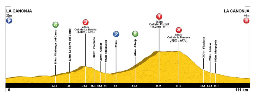 El posterior paso por la Mussara, del que únicamente se ascendían dos kilómetros, y el favorable tramo final en busca de la línea de meta han sido la tumba de las opciones de Etxeberria, que ha sido capturado en primera instancia por Carlos Rodríguez, con el que ha compartido varios kilómetros en cabeza, y posteriormente por el pelotón.