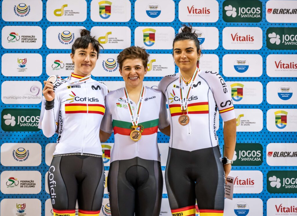 La prueba femenina fue un mano a mano entre Martins y Larrarte: la primera ganaba el scratch y la eliminación, la segunda, la carrera tempo. De esta forma llegaban a la puntuación separadas por dos puntos… aunque la local abrió hueco para terminar 126 a 119. Por detrás, ligeramente descolgada, pero destacada de las perseguidoras, tras un ómnium muy regular a Anguela le valió con vigilar de lejos a sus rivales para asegurarse el bronce, con 105 puntos.