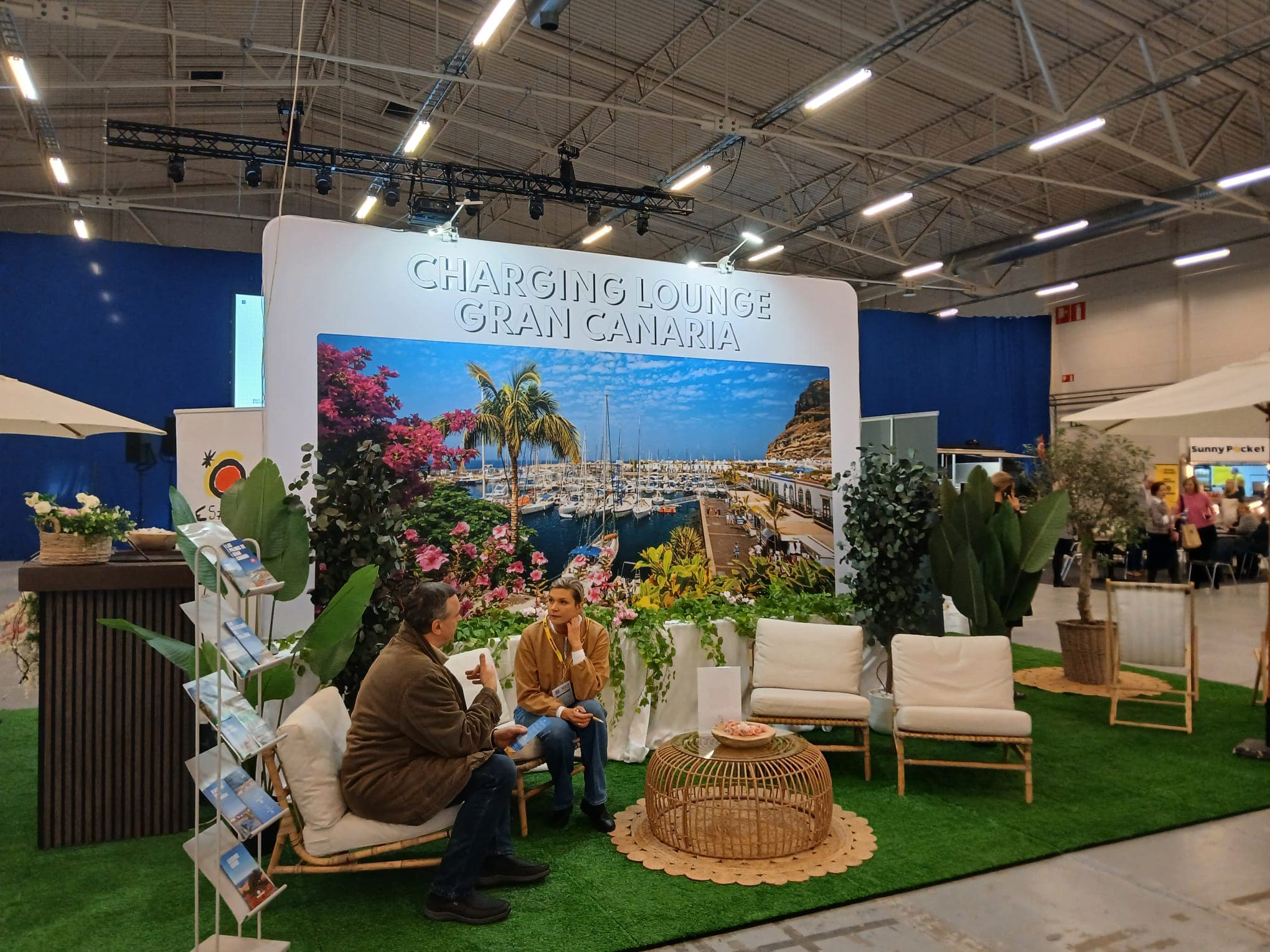 Como novedad este año, el espacio de Gran Canaria adoptó el formato de “charging lounge”, concebido como área de descanso y punto de recarga para los asistentes. Diseñado en coordinación con la asociación estonia de agencias de viaje y la organización de la feria, el estand integró mobiliario confortable, puntos de carga para dispositivos móviles y material promocional del destino, favoreciendo un contacto prolongado y natural con visitantes y profesionales.