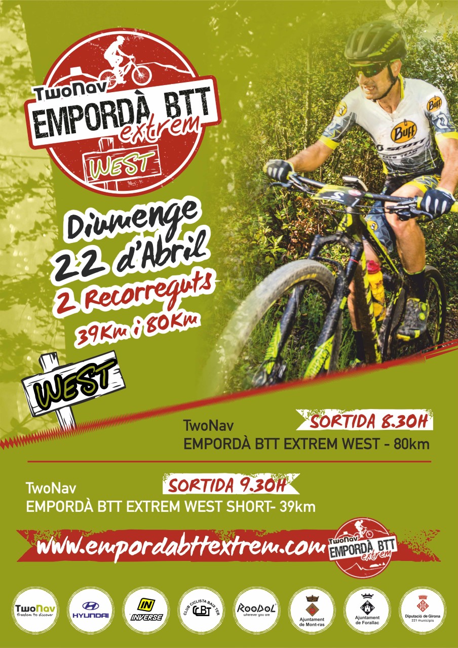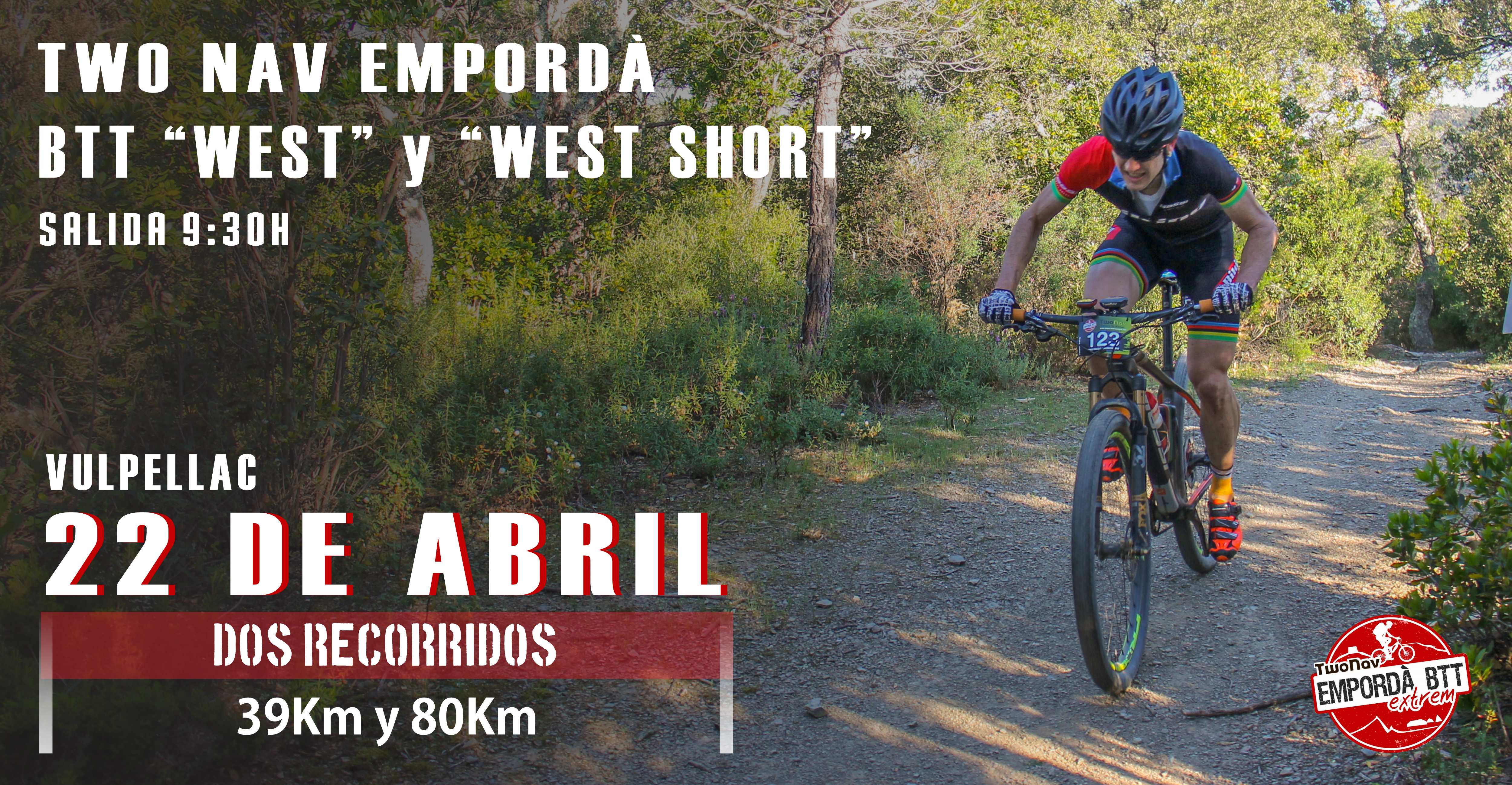 La TwoNav Empordà BTT WEST se disputará el domingo, con salida desde Vulpellac. Consta de un recorrido maratón de 80km y 2430m positivos por la zona oeste de las Gavarres y que corresponde a la 3ª etapa, la más exigente de todas.
