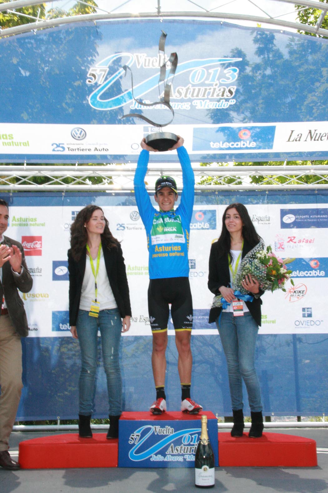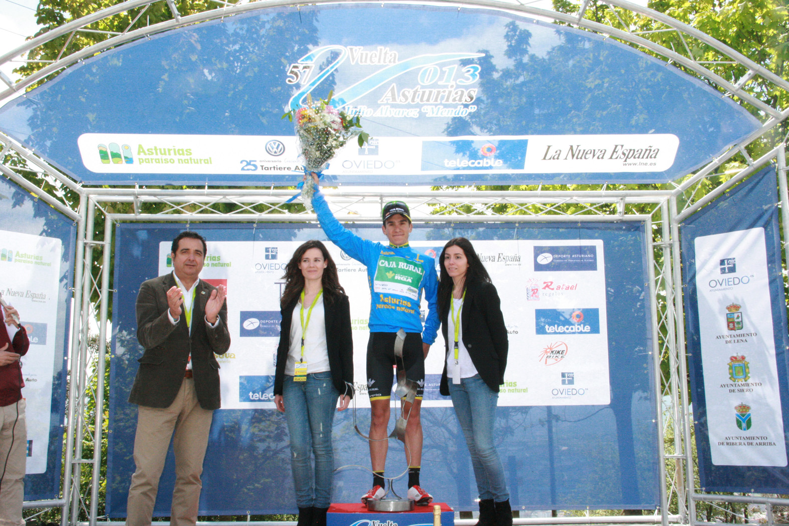 El vencedor de la Vuelta a Asturias 2013 Amets Txurruka se mostraba muy alegre en el alto del Naranco tras su triunfo. Amets se lleva de Asturias una victoria de etapa y la victoria en la general, un gran resultado para el Caja Rural-RGA, como informa su propio equipo.