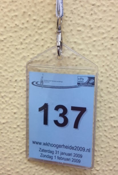 El caso es que fue un Campeonato que no había comenzado nada mal… un año antes. En la presentación oficial del evento –durante el Mundial de Treviso 2008-, la organización nos entretuvo con una quiniela, en la que había que acertar seis preguntas relativas a la historia del ciclocross en Hoogerheide. Ninguno de los aproximadamente dos centenares de asistentes adivinamos todas, pero entre los que nos quedamos en cinco se realizó un sorteo… en el que este servidor, con ese ‘dorsal 137’ que aparece en la imagen, fue el afortunado: un bonito reloj que recibí de manos de Pat McQuaid y de Adrie Van der Poel –el hijo más ilustre de la villa neerlandesa y alma mater de aquel evento-, ambos sorprendidos de que un españolito se llevara el galardón. Ni que decir que mis compañeros –comenzando por el doctor Iñigo o el seleccionador Pla– lo atribuyeron a la suerte… Y algo de fortuna hubo, aunque también algo de conocimientos y mucho de intuición a la hora de responder.