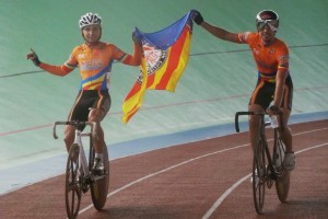 4 – Como sabéis, desde hace tiempo siento una especialidad debilidad por Julio Alberto Amores, el pequeño gran ciclista alicantino, desde que le ví competir como júnior en Tafalla. No le fue muy bien en el Mundial, menos aún en el Europeo, pero en Galapagar ha recuperado ese desparpajo que le caracteriza, demostrando que hay que contar con él en el futuro… siempre que tenga las oportunidades necesarias para prepararse en carretera. Junto a él ganando el oro de la siempre espectacular madison un Sebastián Mora que sigue creciendo, especialmente como persecucionista. Sin embargo, para mí la gran estrella de Galapagar fue Albert Torres. Gracias a una ‘dispensa’ especial salió en la madison con ese ‘arcoiris’ que tanto echábamos en falta en los velódromos. Y tras haber ganado una increíble puntuación el sábado no solo no se escondió en la madison de esta mañana, sino que como gran maestro dio la alternativa a uno de esas promesas, a Buades, que como decía antes no desentonó… aunque terminase totalmente reventado. Un gran gesto del menorquín que sabe, como nadie, que hay que apostar por el futuro.