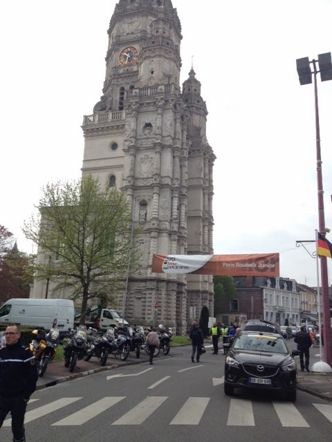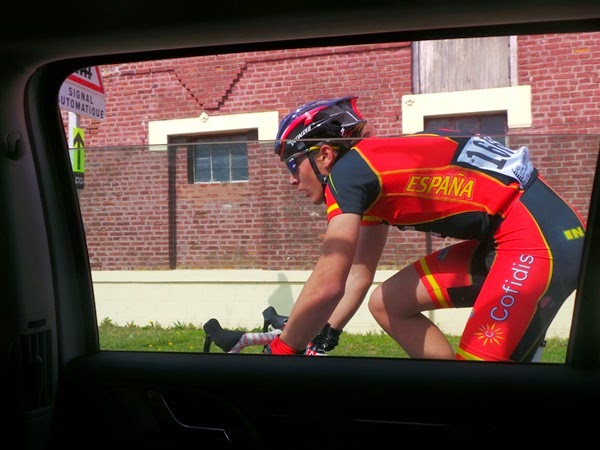 Un escenario sencillo, tirando a modesto. No nos olvidemos que se trata de una carrera juvenil, aunque pertenezca a la Copa de las Naciones UCI. Pero en el ambiente hay una sensación especial. ¿Nervios? ¿Ilusión? ¿Incertidumbre? ¿Miedo escénico? Un poco de todo, sobre todo para los españoles, para los que es una auténtica novedad: ninguno ha corrido jamás en una prueba similar. Alguno comenta, medio en broma, medio en serio, que se ha entrenado subiendo bordillos y rodando por aceras… Tampoco hay demasiado público en la plaza mayor de Saint Amand les Eaux.