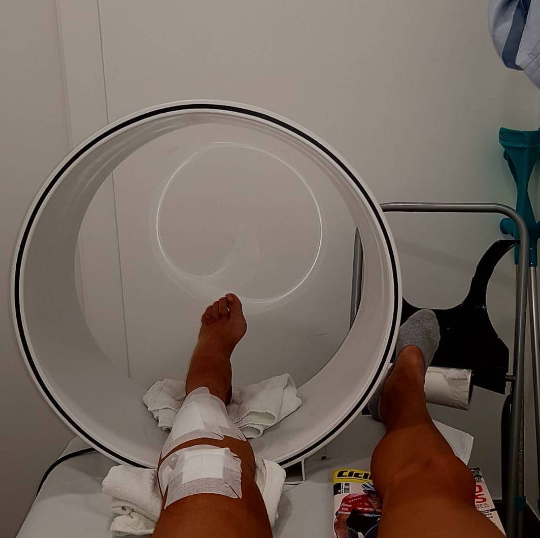 «La temporada está terminada. Tenemos que hacer las cosas bien y no precipitarnos. Forzar no llevaría a ningún lado», asume el murciano que no llevaba la ropa de su equipo. «De momento tenemos que esperar a que suelde el hueso de la rótula -que aunque está unido con los tornillos, debe recuperarse bien- y que también se asienten el astrágalo y el calcáneo en el tobillo, que están rotos y tienen que consolidar. Una vez que esté todo bien, y con todos los procedimientos que estamos siguiendo para mantener la movilidad, podré volver a salir en bici, sin hacer muchos esfuerzos. Aún no sabemos plazos precisos para llegar a eso. Habrá tiempo de buscar los objetivos del próximo año una vez que terminemos una buena rehabilitación. Aunque no esté entrenando, este proceso está siendo realmente duro. Pasamos toda la mañana y toda la tarde trabajando aquí. No queda otra: si quieres volver bien, hay que trabajar duro«.