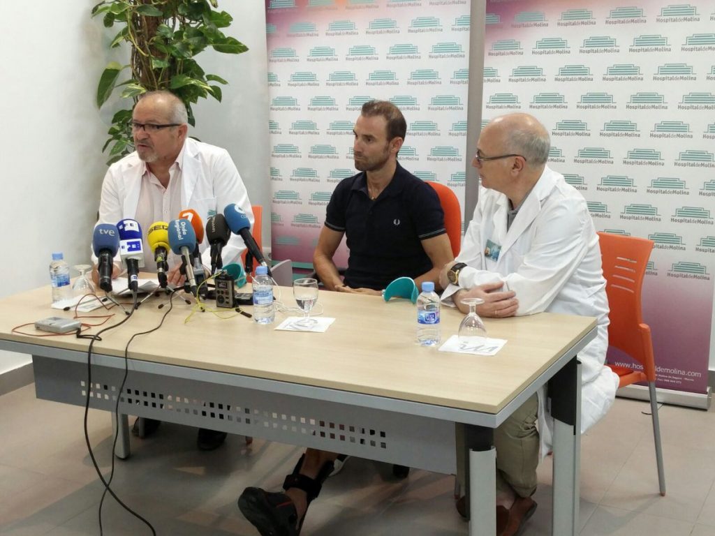 Poco más de dos semanas después de la caída y lesiones que le obligaron a abandonar el Tour de Francia 2017 cuando solo había cubierto siete kilómetros de la CRI inicial en Düsseldorf, Alejandro Valverde (Movistar) protagonizó este miércoles una rueda de prensa en el Hospital de Molina, en su Murcia natal. Acompañado del Dr. Francisco Esparza y del gerente del centro, Pedro Hernández Jiménez, Valverde explicó el estado de su recuperación -que le mantendrá apartado de la competición durante lo que resta de campaña 2017- y agradeció las ingentes muestras de apoyo recibidas desde todas partes del mundo en uno de los momentos más duros de su trayectoria profesional.