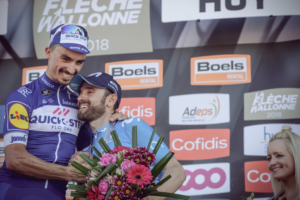 La Flecha Valona equipara a ambos ciclistas, les hace especiales, la Flecha Valona y la Lieja-Bastogne-Lieja, también. Recuerdo una edición de la decana en la que Valverde gana por delante de Alaphilippe y éste cruza la meta cabreado. Julian sabía en aquel entonces que esa carrera estaba en sus posibilidades, ojo que no la ha ganado aún, pero también sería consciente del monstruo al que se estaba enfrentando. En todo caso, y al margen de la línea de sucesión que ambos han trazado en la Flecha Valona, lo cierto es que identificamos grandes diferencias entre uno y otro ciclista, diferencias que van en varios sentidos y que tienen que ver, no podía ser de otra manera, con el equipo y país al que pertenecen.