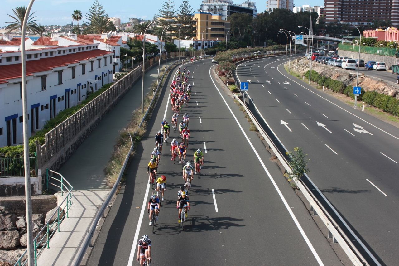 La 26ª Vuelta Cicloturista Internacional Gran Canaria-Costa Mogán ha dicho adiós al 2014 con la disputa de la quinta y última etapa, la más larga de la ronda, que ya llevado al pelotón cicloturista paralelo a la costa hasta Vecindario, donde estaba situado el control de avituallamiento.