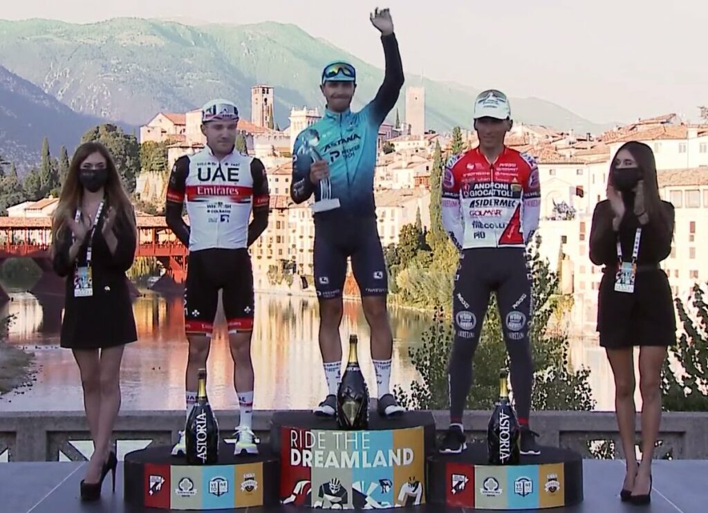 Samuele Battistella (Astana): «Lo siento por Trentin, íbamos regulando y de acuerdo, yo estaba tirando hacia arriba y me levanté sobre los pedales y él tocó mi rueda y se cayó. Todavía quedaban 15 km de carrera y pregunté al director qué hacer y Martinelli me dijo que siguiera adelante para ver si alguien me cogía. Después de la subida me fui directamente a la llegada. Con Matteo habría sido fácil llegar a la meta, pero podría haber perdido. Lo siento mucho por él. Nunca me di la vuelta, fui a por todas y sabía que podía hacerlo. Mi primera victoria como profesional es como un renacimiento. La temporada empezó mal con problemas de salud, pero al final de la temporada acaba bien. Siempre he trabajado para Aleksey Lutsenko y hoy él ha correspondido trabajando para mí. Soy de Rossano Veneto, a menos de 10 kilómetros de aquí, y estas son mis carreteras de entrenamiento. Me sorprendió la afición y el público que me empujaba, creo que gracias a ellos llegué solo a meta. Ganar en casa tiene otro sabor. Tengo que dar las gracias a mis compañeros de equipo porque hemos corrido como un equipo y acabo de finalizar su gran trabajo. La táctica era que tenía que anticiparme, luego Lutsenko se movería en la final. Estaba bien, lo ha demostrado en los últimos días, y era una garantía de que hoy también estaba fuerte».