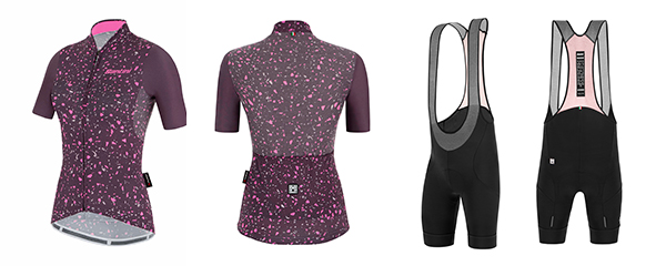 Maillot para mujer firmado por Santini y confeccionado con Polartec©️ Power Stretch, un tejido transpirable y extremadamente flexible, gracias a su estructura elástica en 4 direcciones. El panel inferior, salvo la zona de los bolsillos, y la zona de las axilas están fabricados en Polartec©️ Delta, que actúa como sistema de enfriamiento y facilita la transferencia de calor del cuerpo, gestionando el sudor. Esta combinación de tejidos hace que el maillot Delta Pietra sea ideal para las salidas estivales con mucho calor. Las mangas no tienen dobladillo. Se adhieren sin apretar y el maillot se queda en su sitio gracias a la banda elástica de color de la parte inferior del maillot. Está disponible en cuatro colores (negro, azul marino, vino y gris plateado) con un estampado moderno y atractivo. Precio de venta al público recomendado: 95,00 euros.