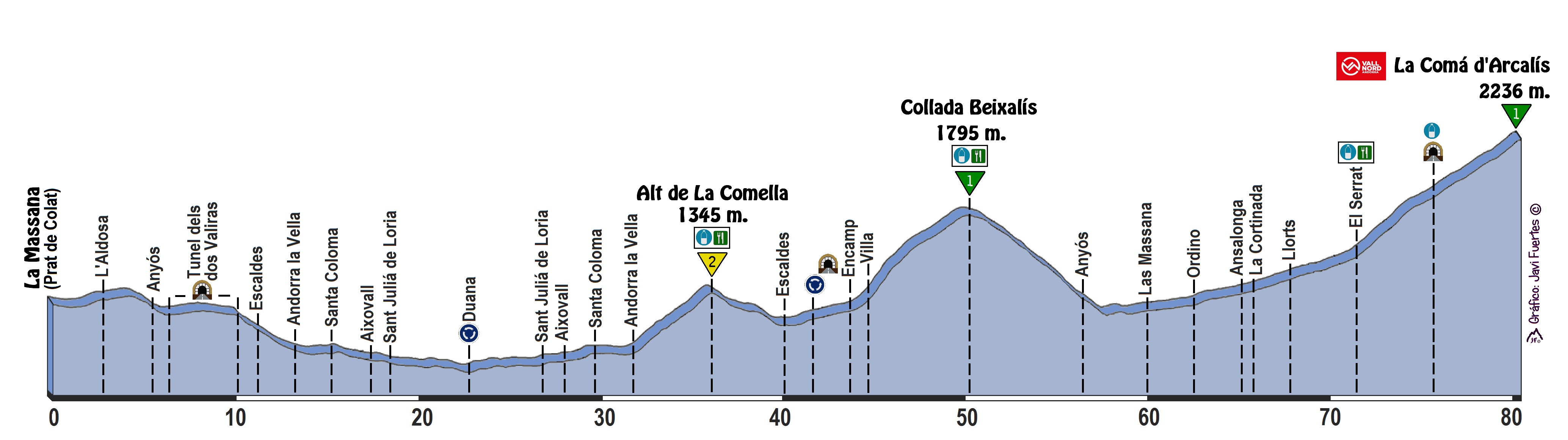 La siguiente distancia sumará más kilómetros y más desnivel, y por tanto más puertos. Se subirán las ascensiones de la Comella, Beixalís y la Coma d’Arcalís para completar 80 kilómetros y 2.300 metros de desnivel.