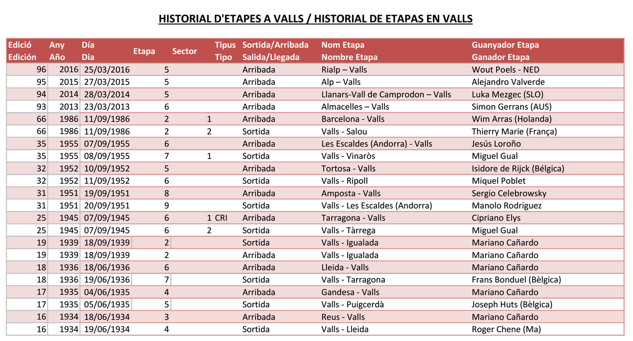 Esta será la decimoséptima vez que Valls será escenario de un acto dentro la Volta a Catalunya.