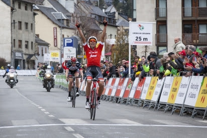 Pese a los sucesivos arreones en el grupo perseguidor, los dos fugados han conservado en el descenso a Vielha para jugarse la victoria. Pantano ha arañado algunos metros a Laengen y ha obtenido la victoria, primera de la temporada.