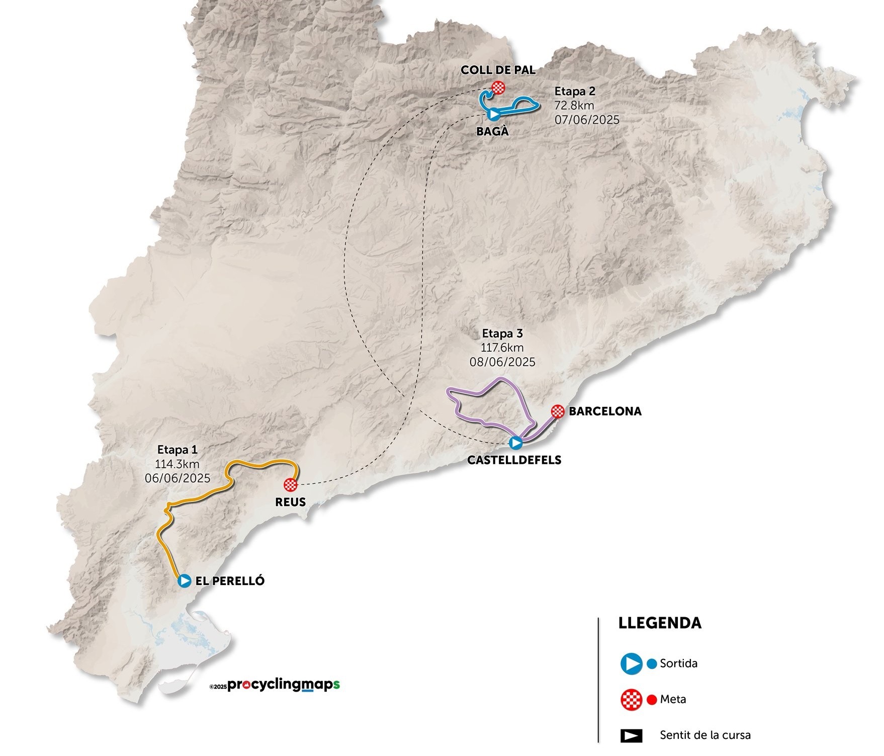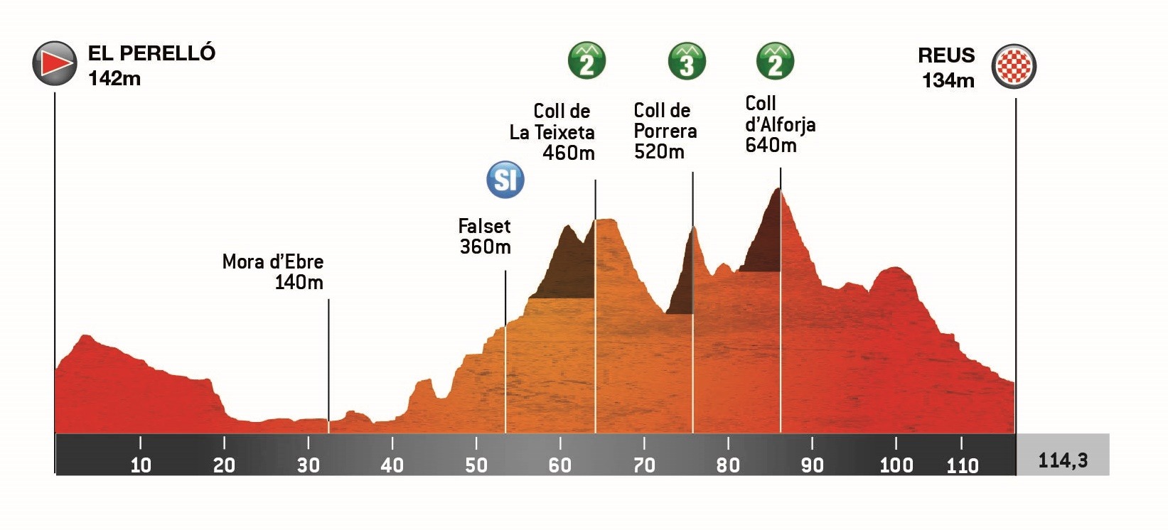 1ª: Viernes 6 junio. El Perelló (14:50)-Reus (18:00), 114,3 km. TV a partir de las 16:30h