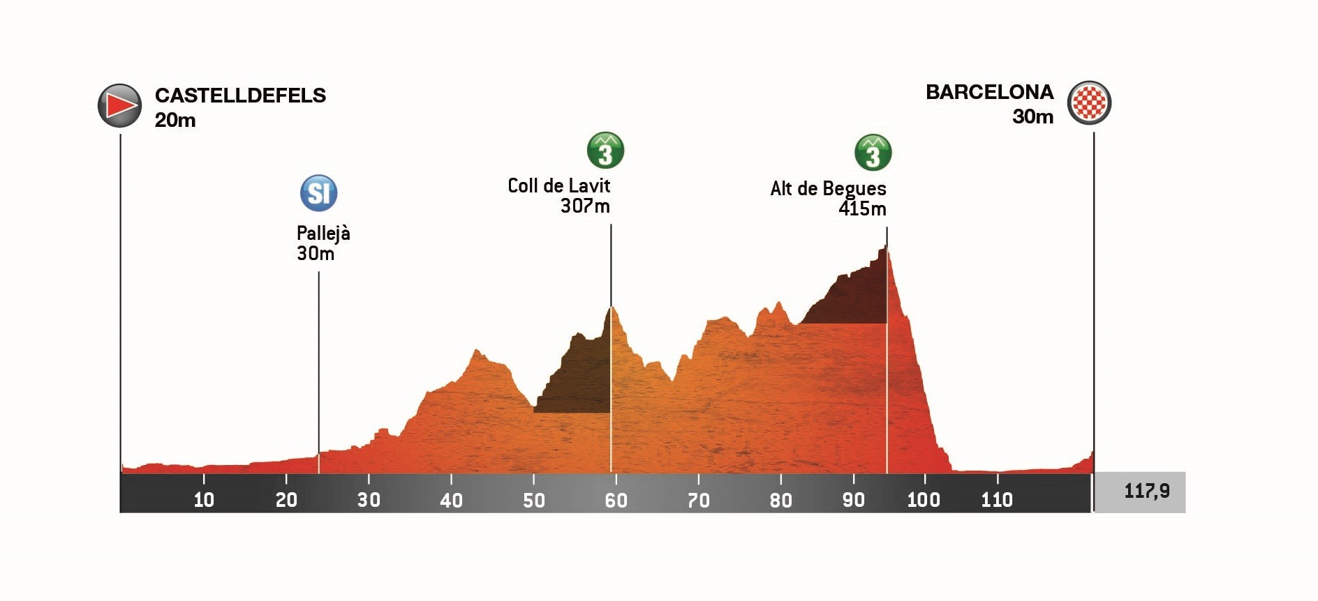 3ª: Domingo 8 junio. Castelldefels (11:05)-Barcelona (14:00), 117,9 km. TV a partir de las 12:15h