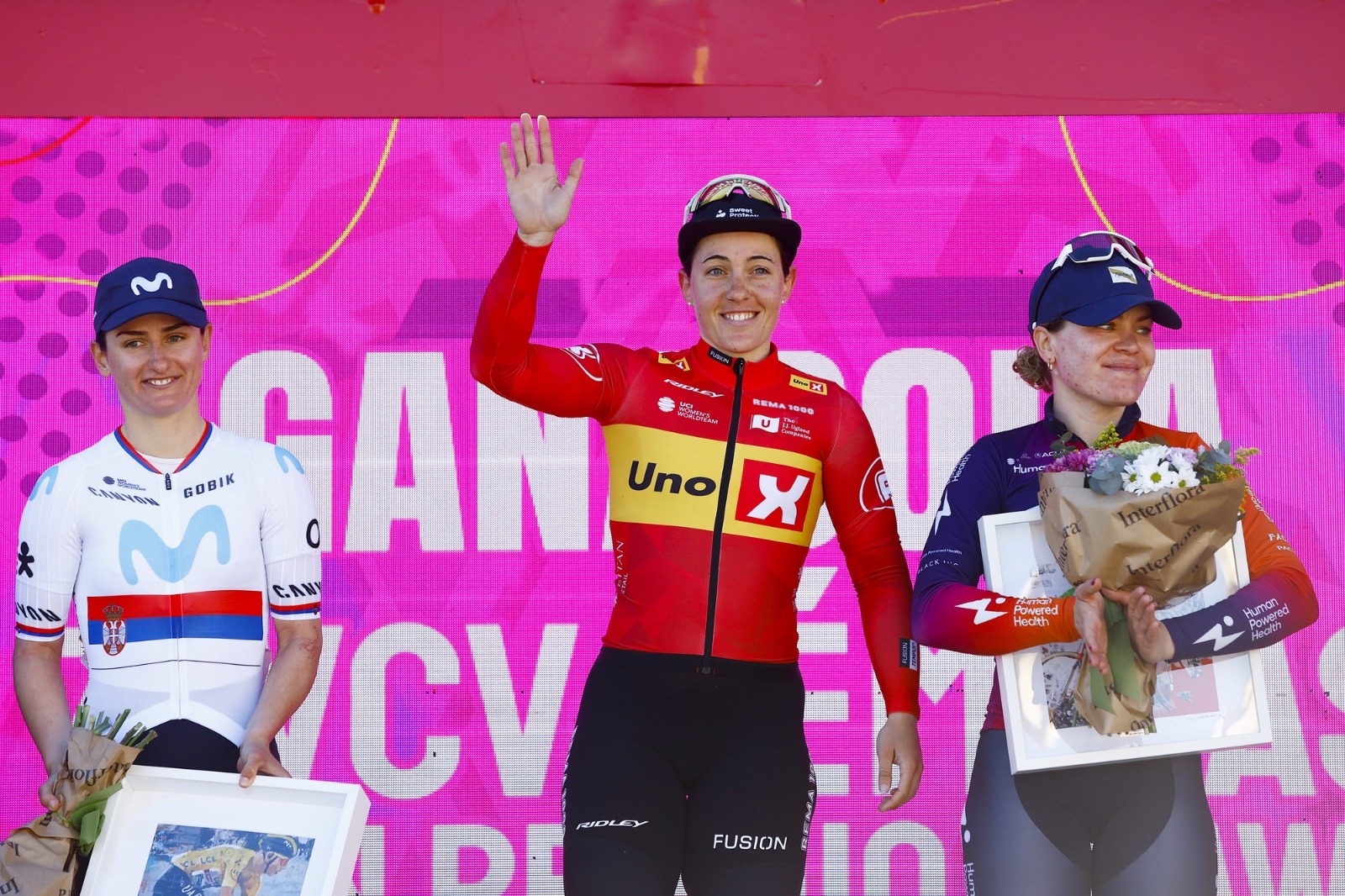 Linda Zanetti venció la 7ª edición de la Volta a la Comunitat Valenciana femenina. La suiza de Uno-X aprovechó el incansable trabajo de Uno-X en los metros finales secando todos los movimientos en contra. Jelena Eric (Movistar) y Daria Pikulik (Human) acompañaron en el podio a Zanetti.