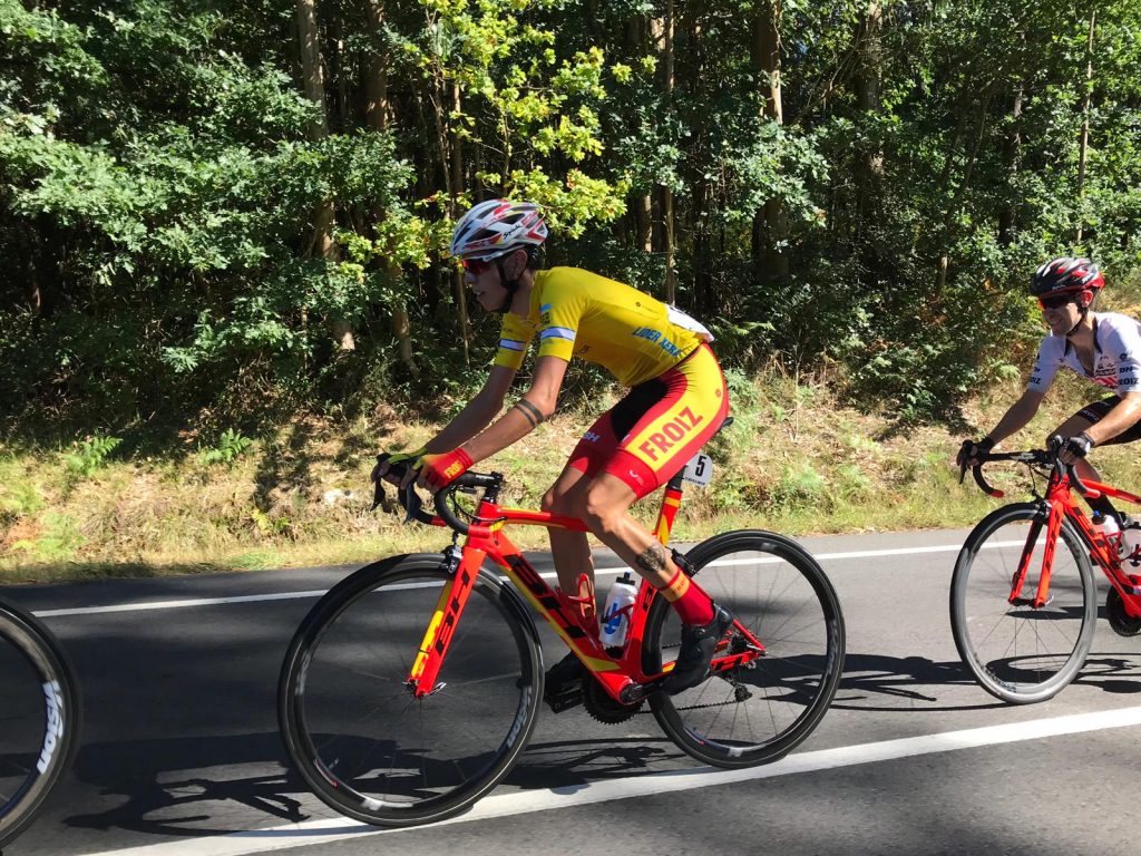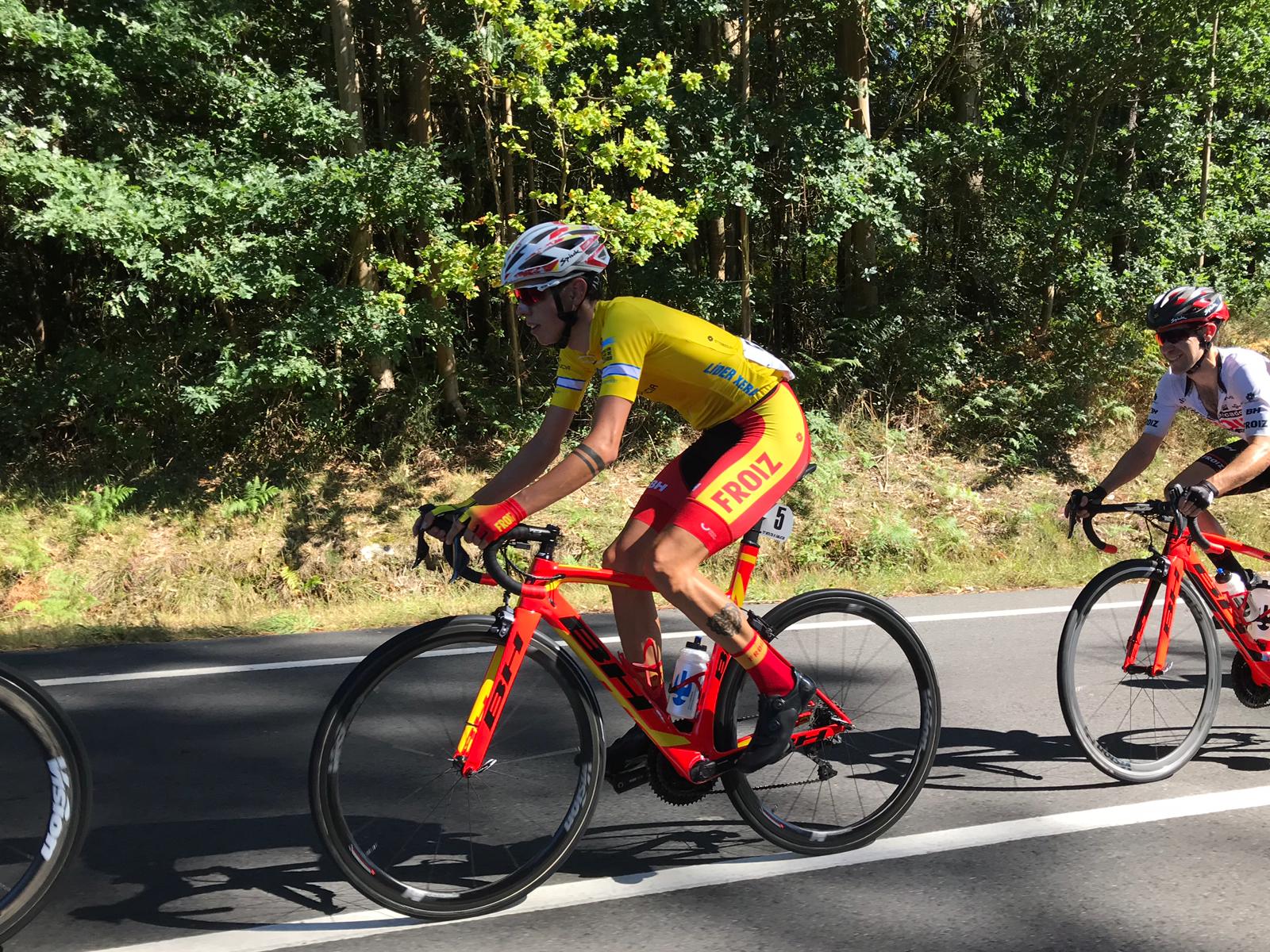 «Después se nos unió un grupo con dos ciclistas del Lizarte y hemos intentado colaborar para abrir hueco porque solo había un Froiz. A unos 20 kilómetros de meta arrancó De Mateos y decidí probar suerte con él para ver si podíamos recuperar tiempo en la general», señala Angulo, que fue neutralizado a 4 km de meta junto al corredor del Padronés y a Aliaksandr Piaterski (Kuota).