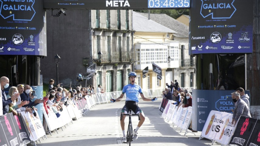 Etapa de contrastes hoy en la Volta Galicia, con salida bajo la lluvia y muchos movimientos en la parte inicial, frente al final soleado. Un grupo de 22 ciclistas lo probó en los primeros kilómetros, pero pronto fue neutralizado y la carrera no se rompió hasta bien pasada la primera hora de competición.