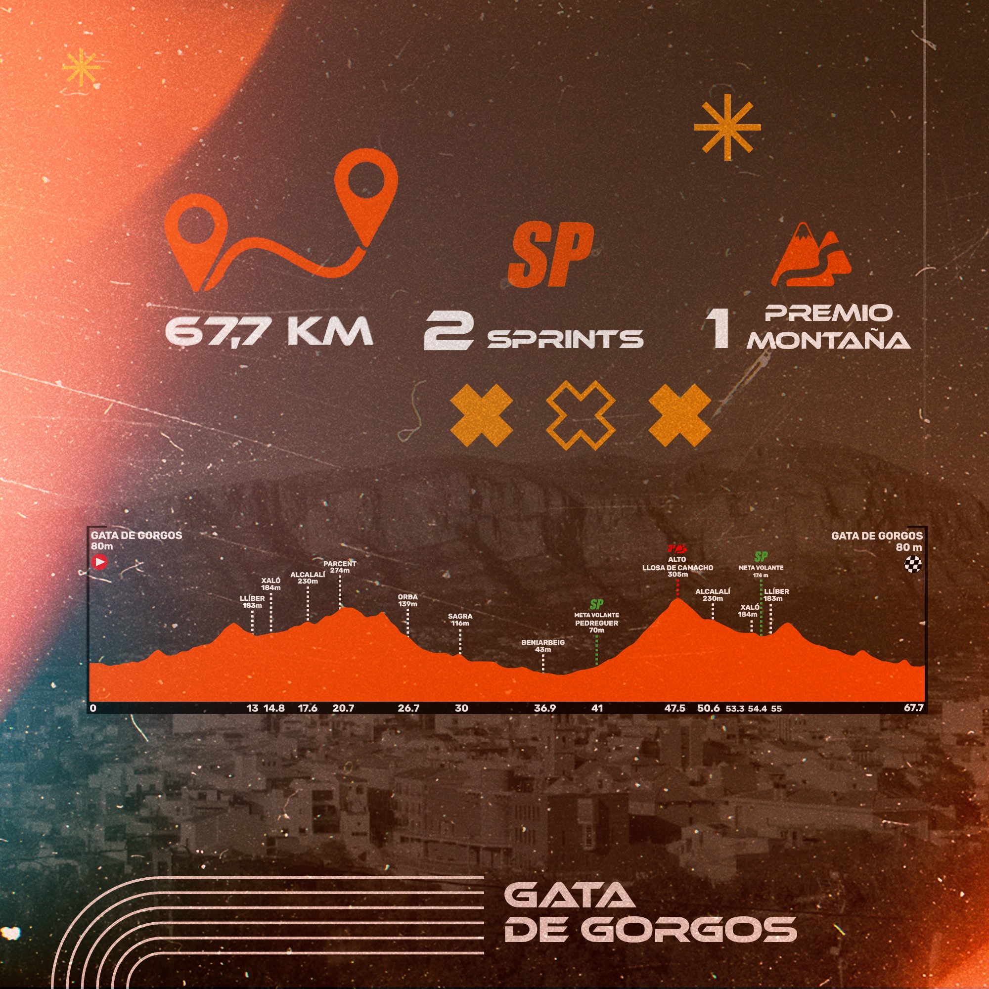 Únete a nosotros en Gata de Gorgos para vivir esta etapa inolvidable y apoyar a los corredores en su lucha por la victoria.