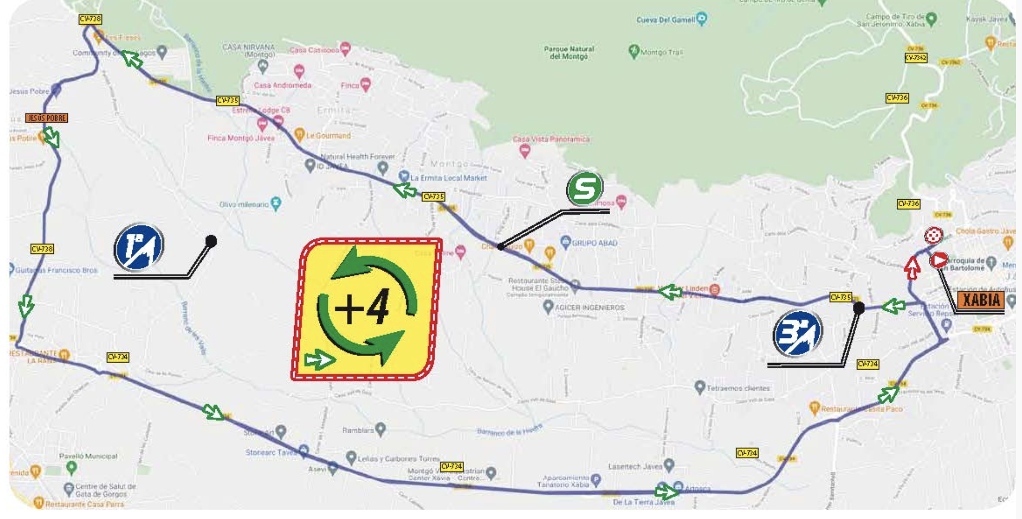 La salida está prevista a las 10 de la mañana en la Plaza de la Constitución de la localidad alicantina. El recorrido programado consistirá en dar cuatro vueltas a un circuito de 16,3 kilómetros, Xàbia-Jesús Pobre-Gata de Gorgos-Xàbia, hasta completar los 67,2 kilómetros con el ascenso al Colomer.