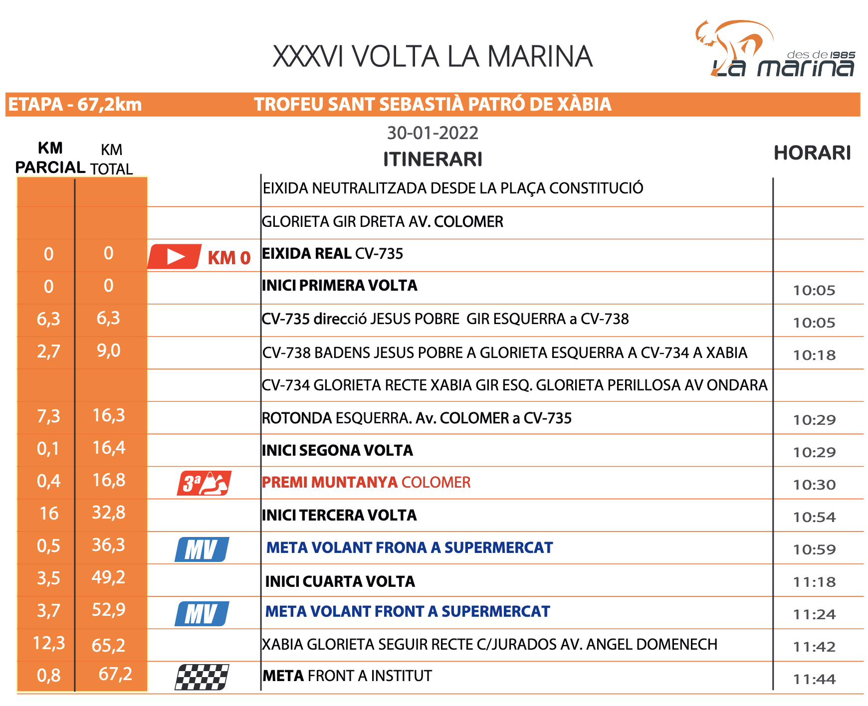 La cuarta prueba puntuable de la Volta a La Marina 2022 -Trofeu Sant Sebastià- se celebrará en la localidad de Xàbia el próximo domingo 30 de enero, prueba organizada por el CC Jávea y patrocinada por el ayuntamiento local.