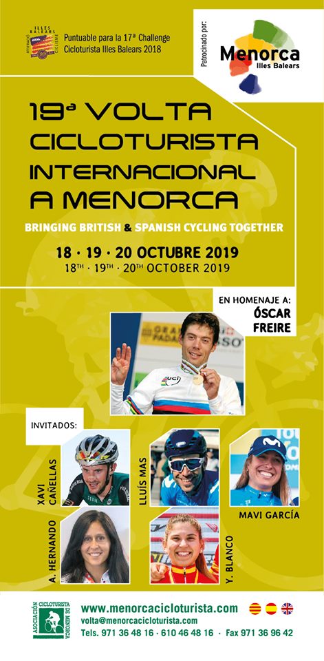 Del 18 al 20 de octubre, la isla balear acogerá la 19ª Volta Cicloturista Internacional a Menorca en la que pueden participar tanto ciclistas con licencia federativa como sin ella, estando abierto el plazo de inscripción hasta el lunes 14 de octubre, a las 21.00 horas.