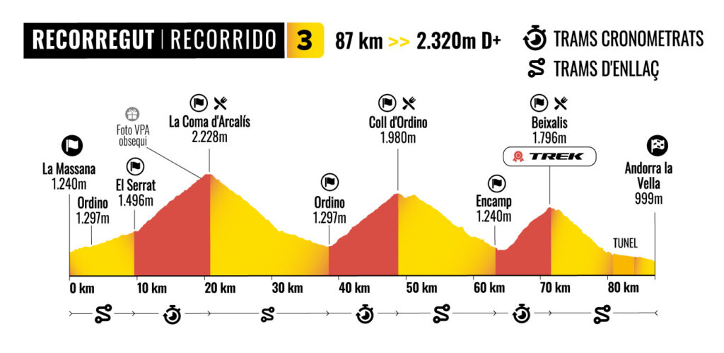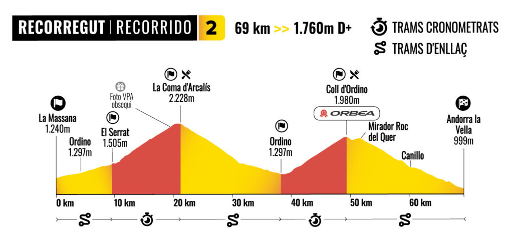 - El recorrido tendrá el tramo cronometrado desde el Serrat hasta la Coma de Arcalis, del Pueblo de Ordino al Coll d’Ordino y del pueblo de Encamp en la Collada de Beixalis.
