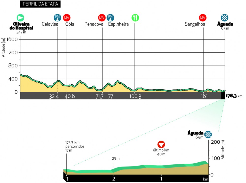 El duelo Efapel-W52 se decantó esta vez del primer equipo gracias a la explosividad de Joni Brandão que superó al grupo de diez favoritos adelantando en la cima clásica de Torre a Frederico Figueiredo y Amaro Antunes, segundo y primero de la general, respectivamente, y a Gustavo Veloso, siempre vigilante con su compañero amarillo. Vicente García de Mateos fue uno de los derrotados del día al ceder casi cinco minutos.