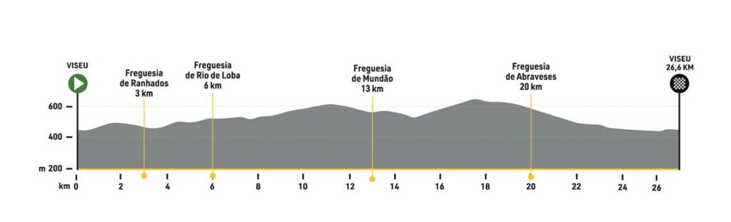 Será un bucle de 158,2 kilómetros entre el Velódromo Nacional de Sangalhos, en Anadia, y el Observatorio de Vila Nova, en Miranda do Corvo. La línea de meta coincide con un premio de montaña de primera categoría, una dura subida de 9,9 kilómetros con una pendiente media del 8,3%. Le precederá una montaña de segunda categoría en Senhor da Serra, 14,7 kilómetros antes del inicio de la subida final.