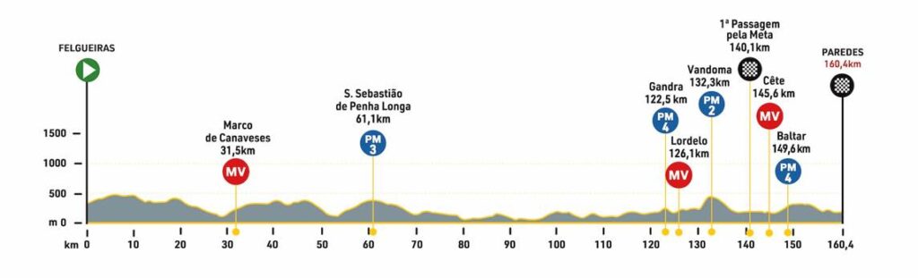 La séptima etapa añadirá 160,4 kilómetros a las cuentas del pelotón, uniendo Felgueiras a Paredes, en lo que podría ser un día para los sprinters, de no ser por las subidas de Vandoma y Baltar en los últimos 30 kilómetros.