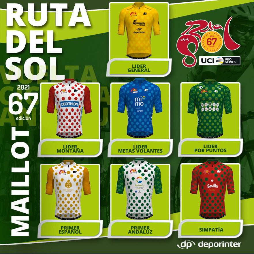 Deporinter, empresa organizadora de la Vuelta Ciclista a Andalucía ha dado a conocer los maillots que vestirán los ganadores en las diferentes clasificaciones que componen esta 67ª edición. Un año más, la empresa Gsport ha realizado unos diseños personalizados para la ronda andaluza con espectaculares guiños a nuestra tierra.