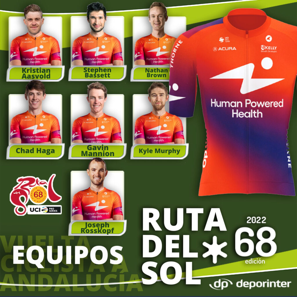 El Human Powered Health es un equipo norteamericano que ha cambiado de nomenclatura después de llamarse Rally Cycling durante varios años. Ya conoce como es la ronda andaluza, ya que tomó parte en ella en las ediciones de 2018 y 2019. El equipo norteamericano presenta un equipo interesante con algunos corredores con experiencia en Europa, es el caso de su flamante fichaje Chad Haga (33). El tejano ll