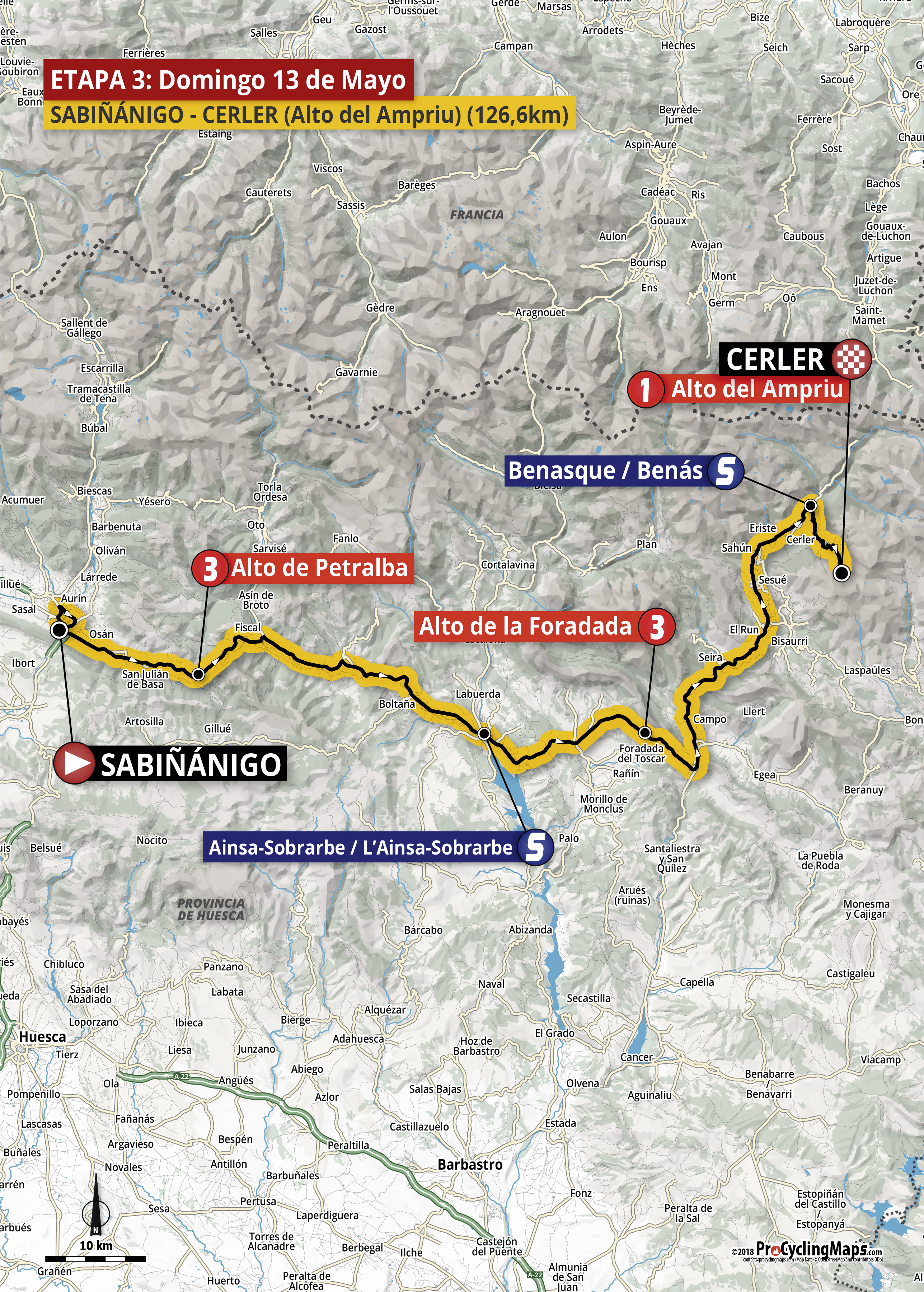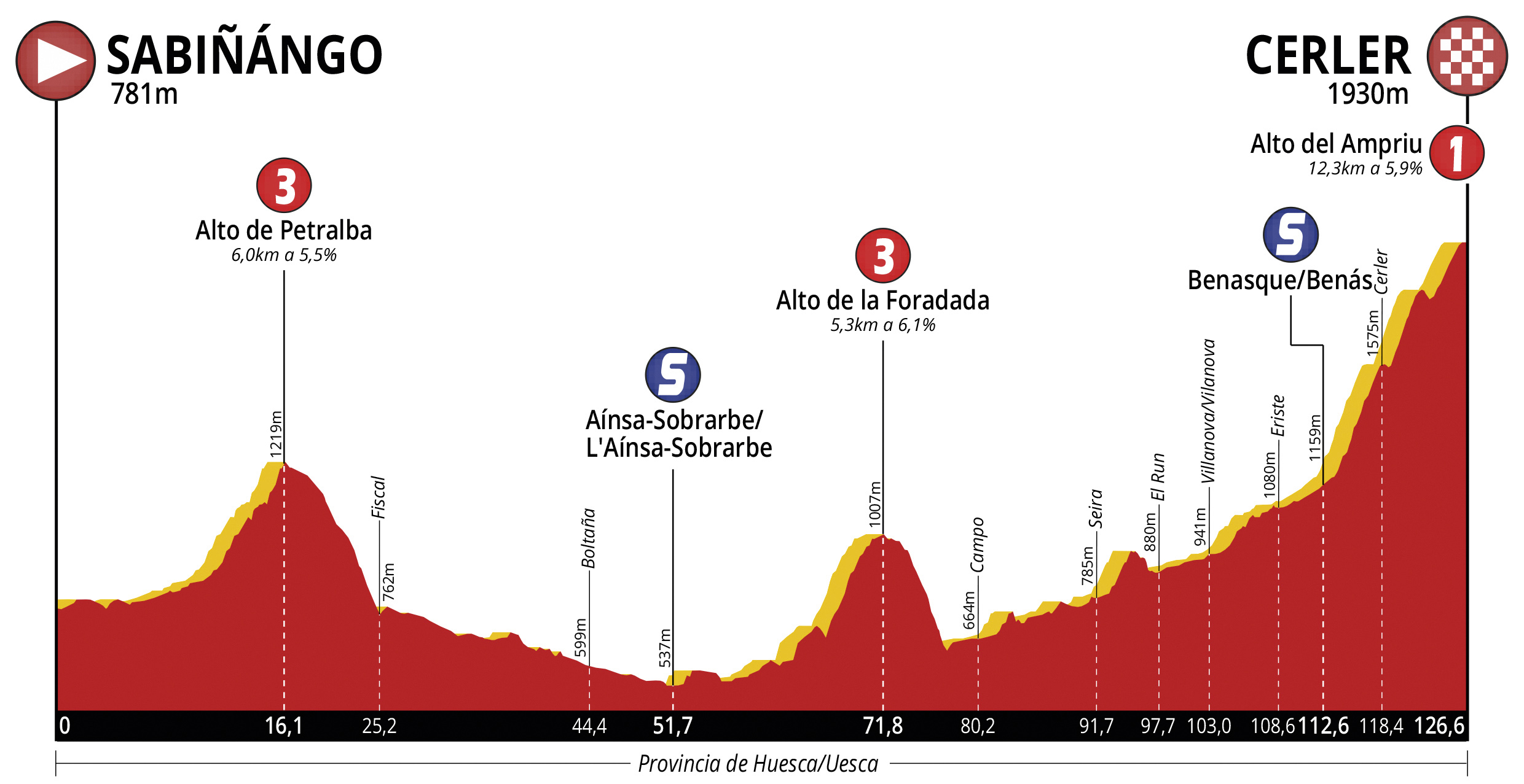 Y con estos mimbres afrontaremos la última y decisiva jornada cuyo final estará situado en la cima de Ampriu, en la Estación de Esquí de Cerler. Serán sólo 130 kilómetros de recorrido con salida desde Sabiñánigo, pero, siguiendo el modelo que con tanto éxito de audiencia ha instaurado la Vuelta a España, se ha buscado la explosividad y los nervios para un día en el que, sin duda alguna, nada estará decidido de partida y, por lo tanto, se decidirá el nombre del sucesor de Rubén Plaza en el palmarés de la carrera.