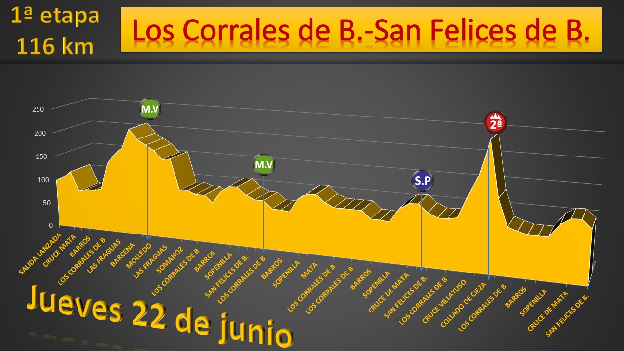 1ª. Jueves 22 junio. Los Corrales de Buelna-San Felices de Buelna (116 Km) RUTÓMETRO