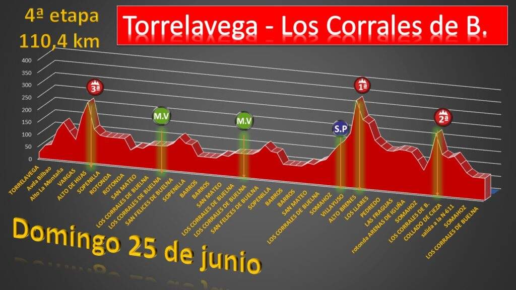 4ª. Domingo 25 junio. Torrelavega – Los Corrales de Buelna (110,4 Km) RUTÓMETRO