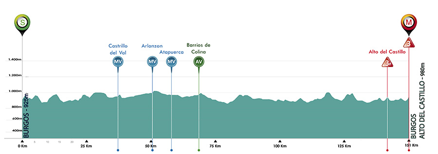 Se trata de una etapa prácticamente llana en la que los corredores podrán rodar sin problemas por la práctica totaliad de municipios que dan forma al Alfoz de Burgos. La principal particularidad es que se contempla una doble ascensión por El Castillo (980 metros), en donde estará ubicada la meta. Las Metas Volantes estarán ubicadas en: Castrillo del Val, Arlanzón y Atapuerca. El avituallamiento se situará en Barrios de Colina.