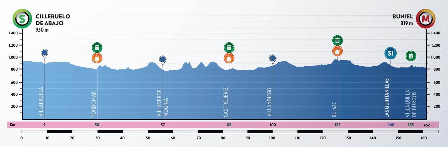 El miércoles 6 de agosto se vivirá la segunda jornada de 162 kilómetros completamente llanos que partirán de Cilleruelo de Abajo y concluirá en Buniel, localidad que se estrena como línea de meta, perfilando una posible llegada masiva al sprint.