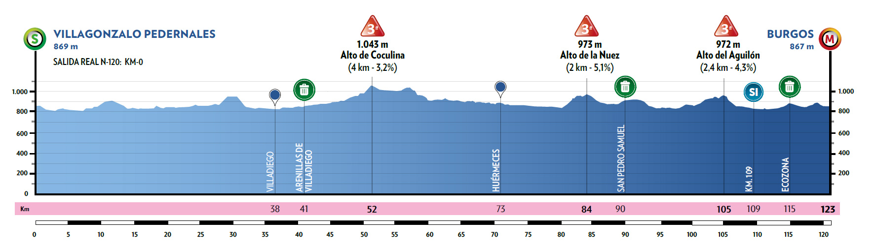a primera y tercera serán para velocistas, con llegadas a Burgos y Melgar de Fernamental, y la otra mitad, de media montaña para escaladoras y aspirantes a suceder a la neerlandesa Demi Vollering. El viernes la carrera acabará en el Alto de Rosales y el domingo se subirá el Alto de Rozavientos, cerca de las Lagunas de Neila, a pocos kilómetros de meta.