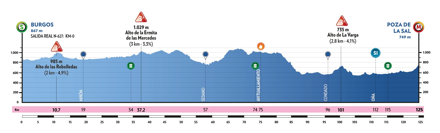 La carrera comenzará por primera vez desde la Catedral de Burgos en una primera etapa que terminará con final en ligero ascenso en Poza de la Sal. La segunda etapa recorrerá el sur de la provincia, uniendo los municipios de Villalba de Duero y Roa de Duero. El sábado se vivirá la etapa reina en el norte de la provincia, comenzando en Soncillo y finalizando en el puerto de Picón Blanco. Como novedad, la carrera burgalesa incluirá en esta edición una contrarreloj individual el último día en el Valle de Mena.