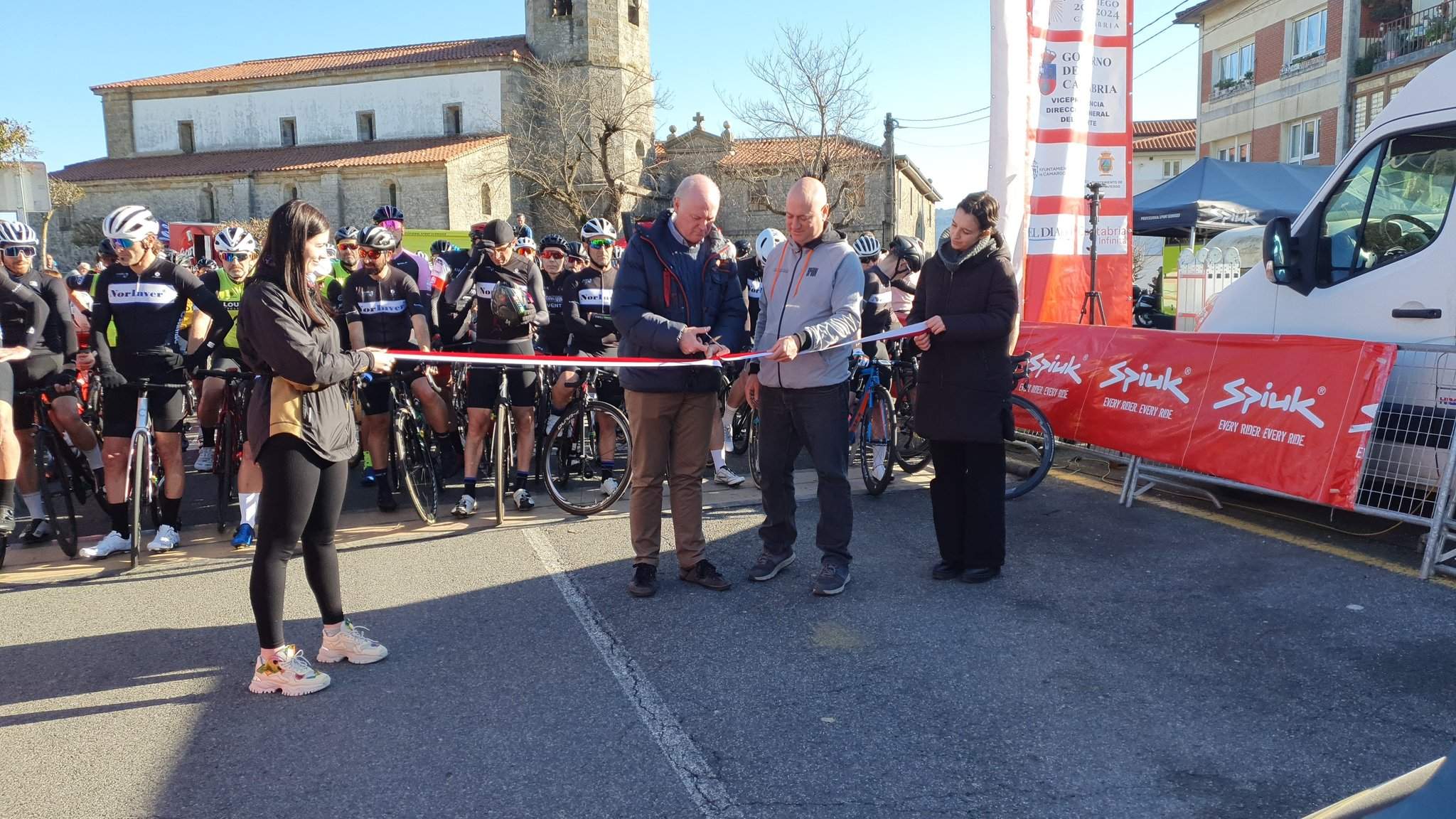 La prueba se inició con el acto protocolario del corte de cinta, asistiendo al mismo por parte del Excmo. Ayto de Camargo, María José Fernández Ruiz, concejala de Medio Ambiente, Gonzalo Rodeño Fernández, concejal de Deportes, Juan José Trueba, presidente de la Federación Cántabra y Domingo Agudo Imaz como gerente de Sportpublic, empresa organizadora de la Vuelta.