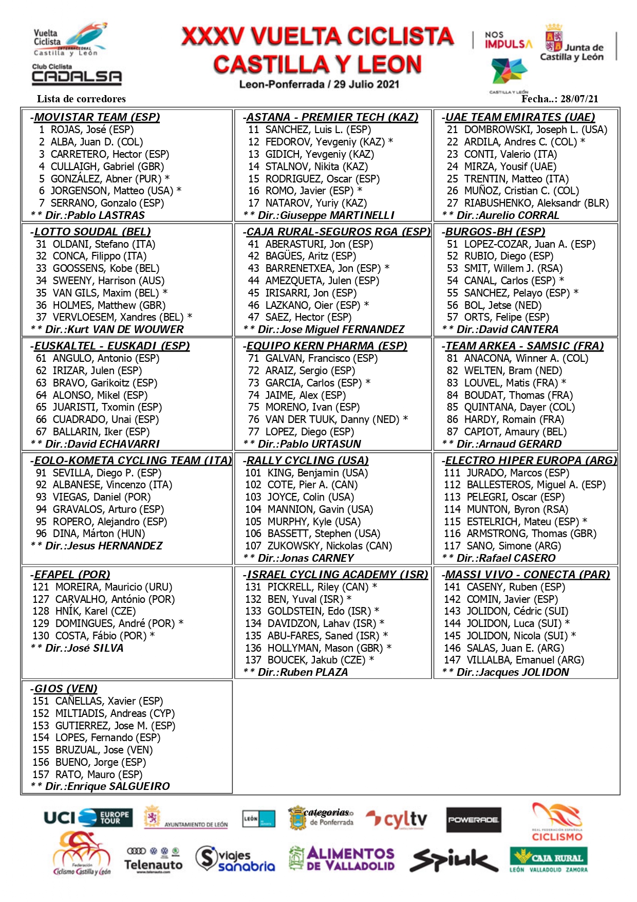 Contará con la presencia de cuatro equipos UCI World Team, siete UCI Pro Team y cinco continentales. Un total de 16 escuadras de 12 nacionalidades. Son Movistar, Astana, UAE, Lotto (WT); Burgos, Euskaltel, Kern Pharma, Caja Rural, Arkéa, Eolo y Rally (PT); Electro Híper Europa, Efapel, Israel, Massi y Gios.
