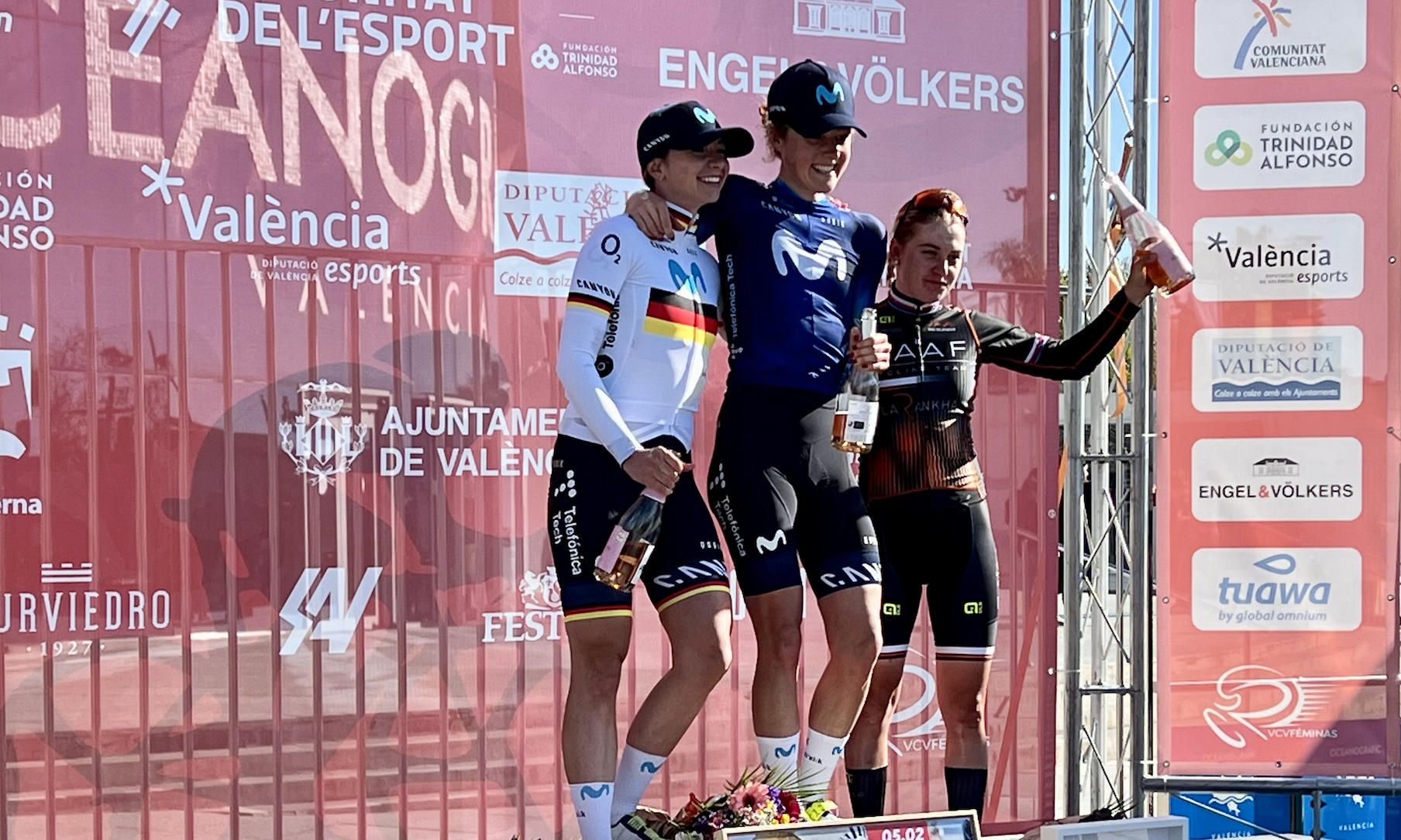 La renovada Volta a la Comunitat Valenciana féminas (1.1) tuvo en el equipo español Movistar al gran dominador de la carrera gracias a la destacadísima actuación de sus dos flamantes fichajes para la nueva temporada, la neerlandesa Floortje Mackaij y la campeona de Alemania Liane Lippert. Ambas ofrecieron un verdadero recital haciendo valer su superioridad numérica en el reducido grupo que se jugó la victoria en la capital valenciana.