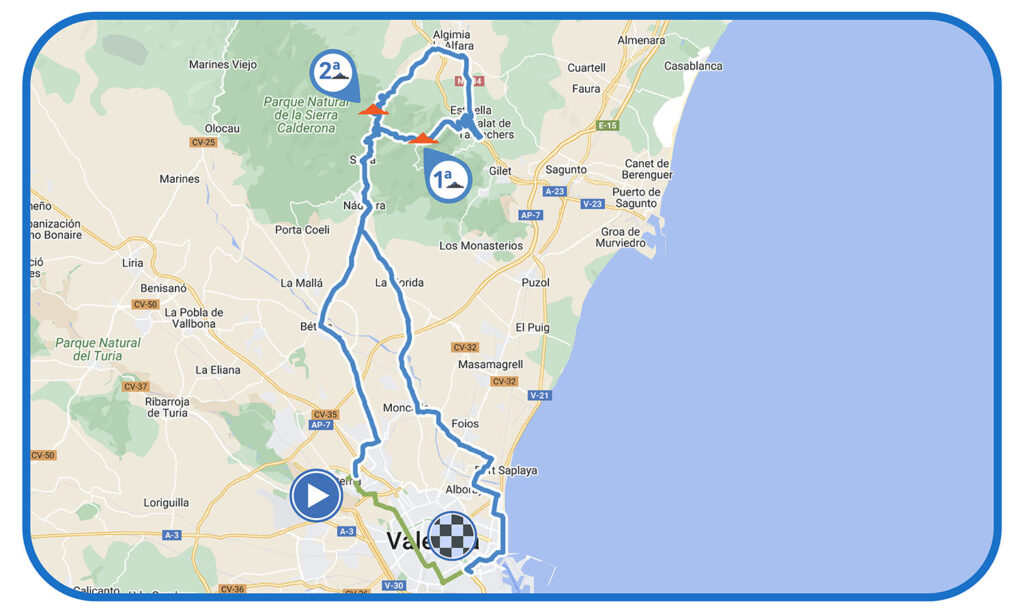 En 2023 se repetirá el paso por Oronet (8,3 km al 3,7%) en la parte inicial, pero esta vez se añadirá el paso por Frontera / Garbí: 5 km al 9,2%, coronado a 42 kilómetros de la conclusión. Dureza más que suficiente para romper el pelotón, dar margen a las escaladoras y propiciar una emocionante hora final de carrera camino de una nueva meta, junto a L’Oceanogràfic de la capital como apunta Movistar.