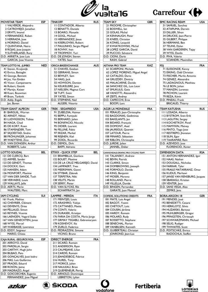 DORSALES OFICIALES VUELTA ESPAÑA 2016